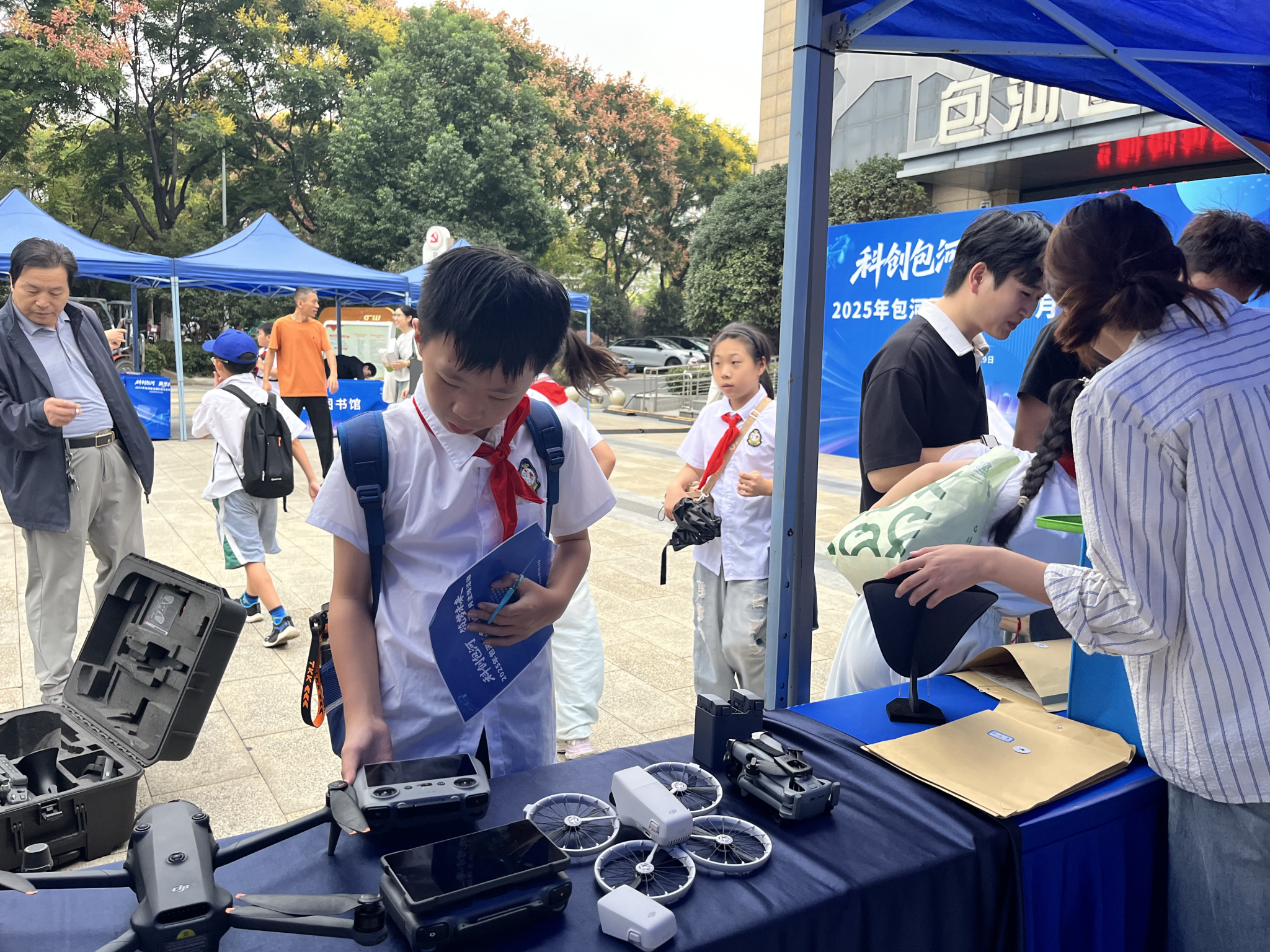 9月19日,2025年合肥市包河区全国科普月活动在包河区文化艺术中心正式启动。安徽工业经济职业技术学院地球科学科普教育基地受邀参展,无人机与宝玉石两大团队亮相现场,以“看得懂、摸得着”的沉浸式科普形式,为现场观众呈现了一场别开生面的科学盛宴。