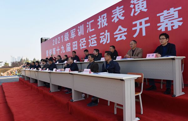 秋气高洁,艳阳朗照。11月1日,学院举办2021级新生军训汇报表演暨第十九届田径运动会开幕式。院领导和各二级学院党政负责人出席,2021级新生,运动会裁判员、运动员参加,副院长黄雪飞主持。